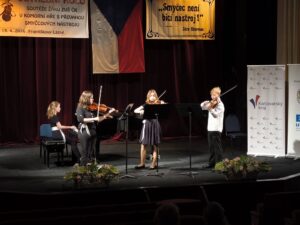 Mimořádný úspěch zaznamenali žáci smyčcového oddělení. Z ústředního kola soutěže komorních souborů ve Františkových Lázních přivezli mladí smyčcaři krásná ocenění – 2. cena kvinteto Komtesky na útěku (J. Zemen), 3. cena Houslové trio s klavírem (L. Krytinářová Uhlíková, A. Nehněvajsová). Kromě krásných uměleckých zážitků si domů přiváží i příjemnou atmosféru lázeňského města. Všem žáků i jejich pedagogům moc gratulujeme a těšíme se na další krásné úspěchy!!!
