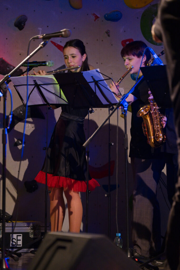 O hudbu se postaral Jazz Band Jindřicha Pavlíka se speciálními hosty Márdim a Pítrsem z Vypsané fiXy, kteří přidali pár svých písní i samostatně. Velkou část programu vyplnil skvělý Junior Big Band ze ZUŠ Vysoké Mýto. V přestávkách se představili naši další žáci v bubenické skupině Filipa Tománka Buchty a tanečníci současní i bývalí v souboru U-dance, který vede Adriana Pozdníková. A zábava nevázla ani mimo parket. Fotokoutek byl plně vytížen a kolo štěstí se točilo nepřetržitě. Celý večer, který provázela pohodová atmosféra plná úsměvů, radosti, skvělé hudby, zbytečně rychle utekl. Děkujeme všem, kteří ho s námi strávili, děkujeme TJ Sokol Pardubice za vstřícnost a přijetí v jejich prostorách. A snad zase za rok! Přijdete?