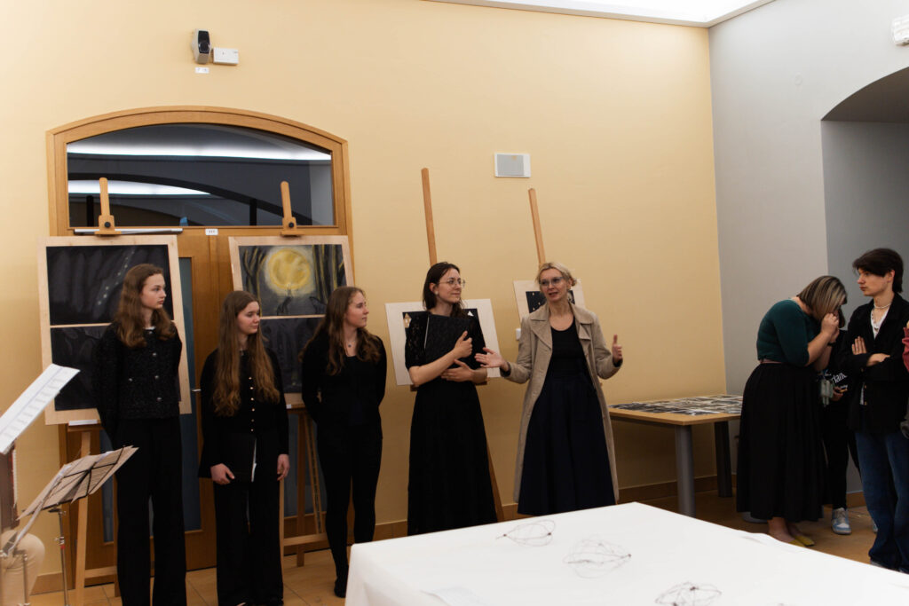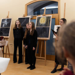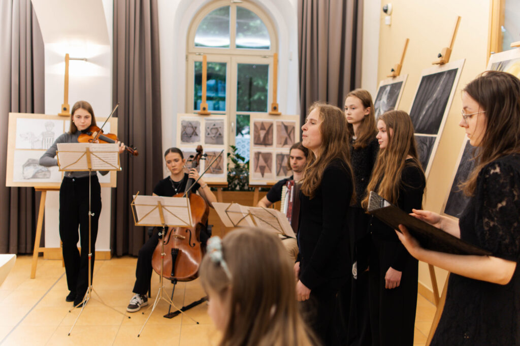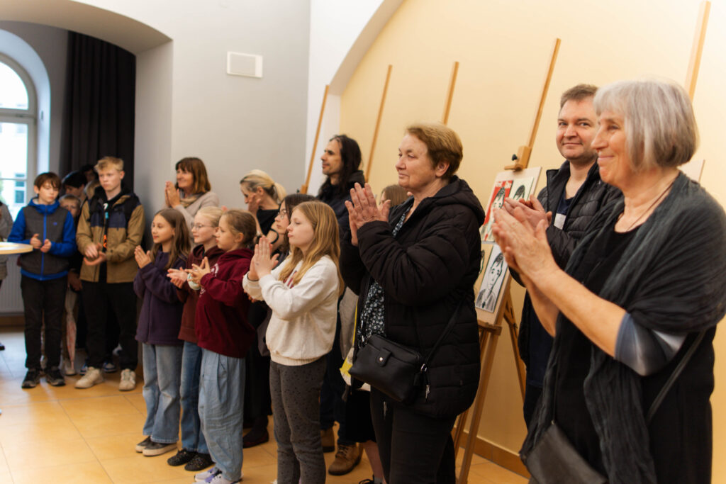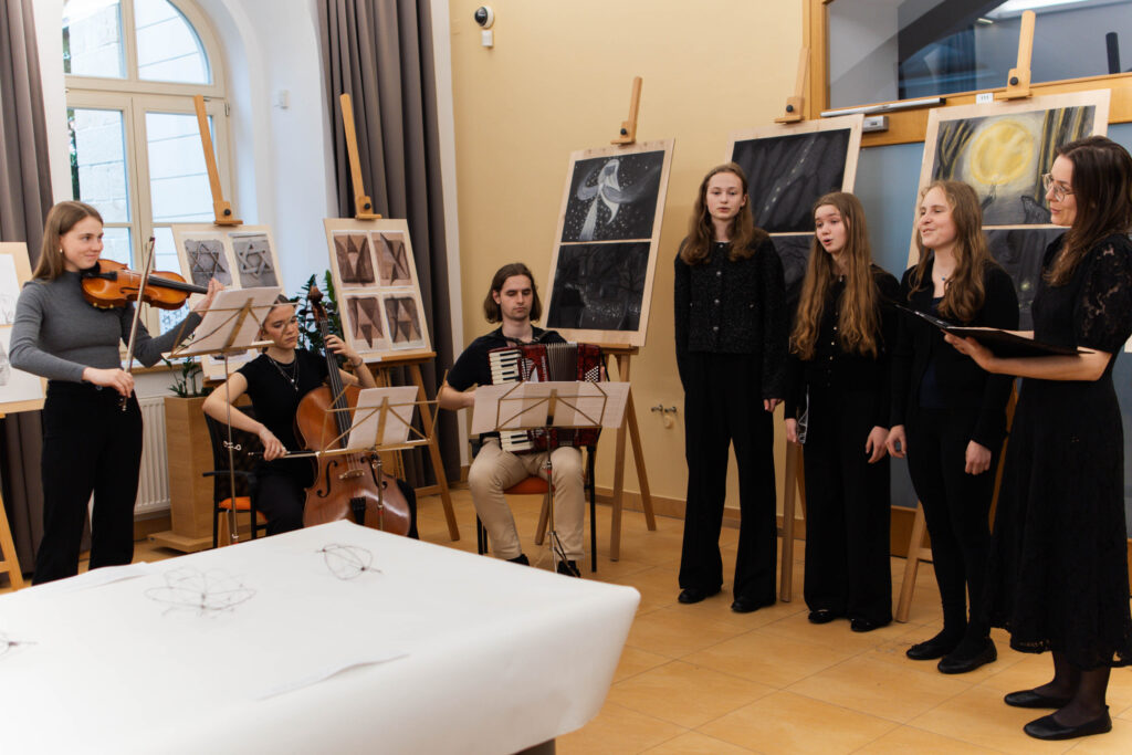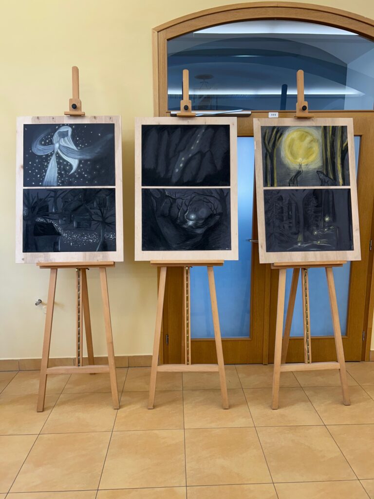 22. 5. jsme se na KÚ rozloučili s výstavou Terezín, výstavou žáků Evy Jebavé, Dominiky Petrusové a Veronika Korbelové z výtvarky. Množství návštěvníků si výstavu prohlédlo, podařilo se jim za pomoci světel z mobilů i „oživit“ drátěná srdíčka, ta krásně „tepala“. O bohatý hudební program se postaral Pavel Merta a jeho saxofonové trio a Kateřina Häcklová se svým souborem Shrim zmirim. Zlatým hřebem byla dramatizace pohnutých osudů dvou pardubických židovských rodin s názvem Mohlo to být tak? v podání našeho dramaťáku za vedení Kláry Litterové. Jaké bylo po vystoupení překvapení a dojetí vystupujících, když zjistili, že potomci těchto rodin byli představení přítomni, čehož si velmi vážíme. Vše zařídila paní Šárka Kuchtová, která nás svými rozhlasovými pořady a iniciativami během projektu o holokaustu skvěle motivovala a na akci byla. Děkujeme velice i paní Renatě Růžičkové z Okresního archivu, která nás v počátcích naší “badatelské činnosti” navedla správným směrem