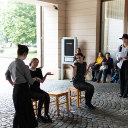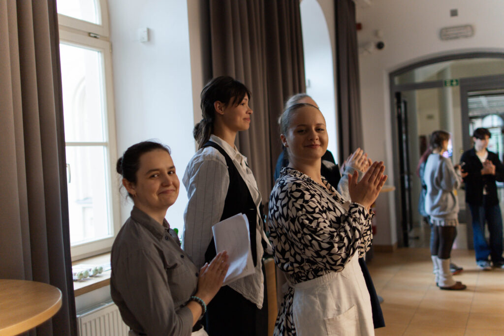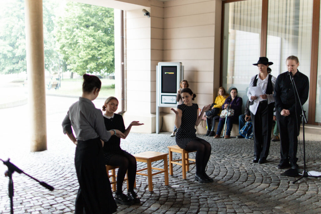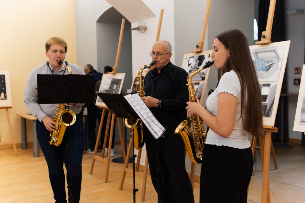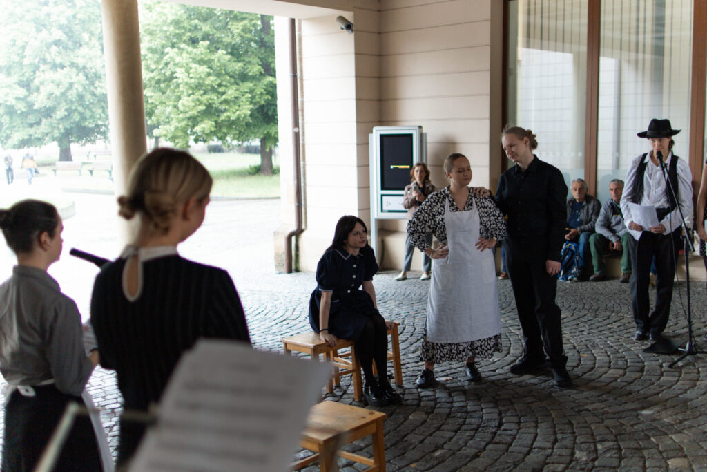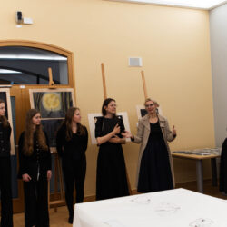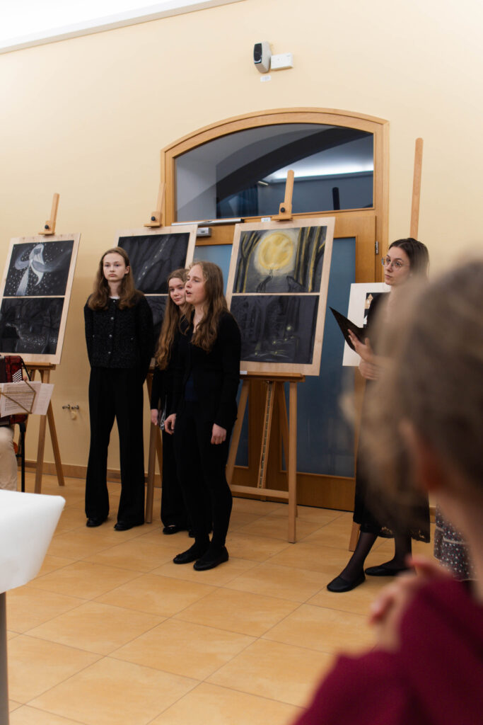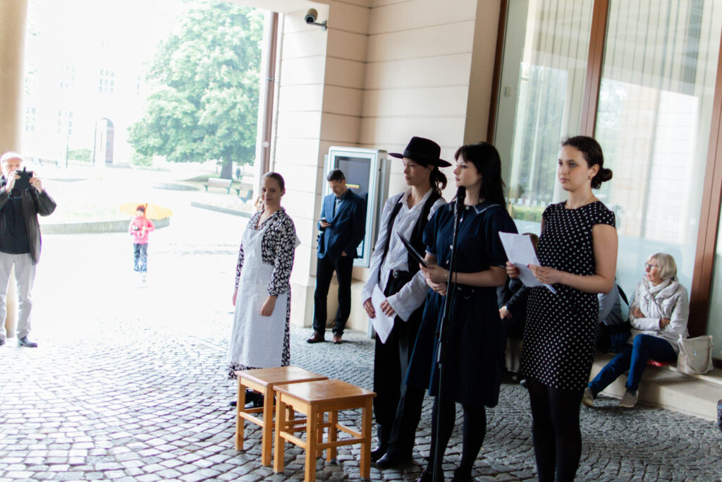 22. 5. jsme se na KÚ rozloučili s výstavou Terezín, výstavou žáků Evy Jebavé, Dominiky Petrusové a Veronika Korbelové z výtvarky. Množství návštěvníků si výstavu prohlédlo, podařilo se jim za pomoci světel z mobilů i „oživit“ drátěná srdíčka, ta krásně „tepala“. O bohatý hudební program se postaral Pavel Merta a jeho saxofonové trio a Kateřina Häcklová se svým souborem Shrim zmirim. Zlatým hřebem byla dramatizace pohnutých osudů dvou pardubických židovských rodin s názvem Mohlo to být tak? v podání našeho dramaťáku za vedení Kláry Litterové. Jaké bylo po vystoupení překvapení a dojetí vystupujících, když zjistili, že potomci těchto rodin byli představení přítomni, čehož si velmi vážíme. Vše zařídila paní Šárka Kuchtová, která nás svými rozhlasovými pořady a iniciativami během projektu o holokaustu skvěle motivovala a na akci byla. Děkujeme velice i paní Renatě Růžičkové z Okresního archivu, která nás v počátcích naší “badatelské činnosti” navedla správným směrem